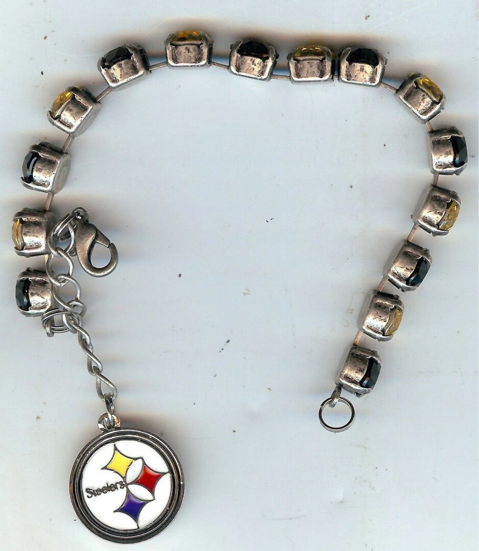 MEA Original, Steeler Fan Bracelet encrusted with glittering crystals from Swarovski®.D1 Swarovski Crystals are Black & Gold Crystals in an Antique SP Bracelet is 7 3/4 ” in length We appreciate your business. Feedback POSITIVE FEEDBACK WILL BE LEFT FOR YOU, ONCE YOU RECEIVE YOUR PACKAGE AND HAVE LEFT FEEDBACK FOR ME. How to Contact Us We try to answer questions in a timely manner. We only answer questions the using e-mail link in the listing. Thanks For L@@king John & Michelle We offer a discount on combined shipping on most items. Visit My Store: adamsunique.boutique